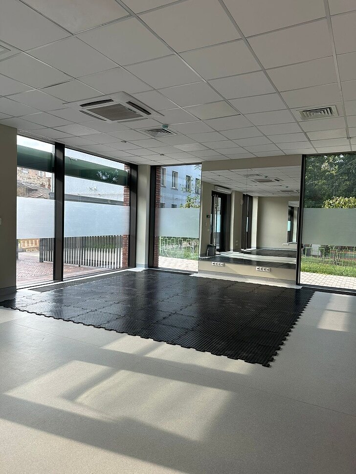 Резиновое покрытие обладает высокими противоскользящими свойствами, что снижает риск падений и травм в условиях дождя или снега. Это особенно важно для входных групп, где предельно короткие временные рамки, когда люди могут сталкиваться с неблагоприятными погодными условиями.